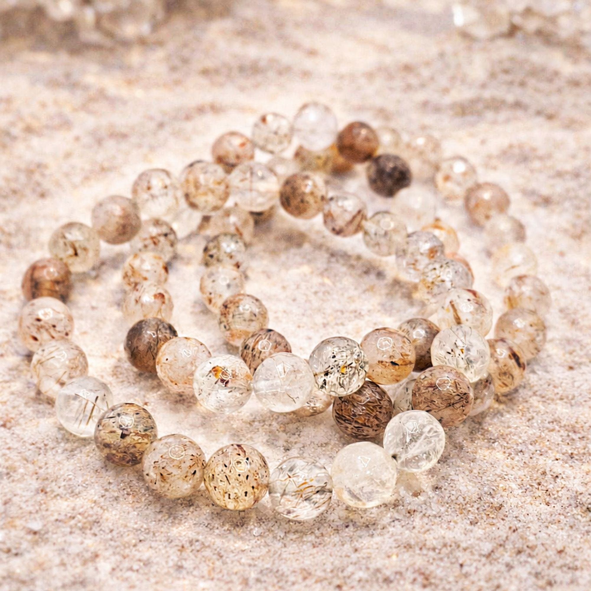 A karkötőt  8mm-es fazettált ásvány gömbökből készítjük, speciális, gumis damilra fűzve.